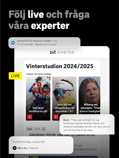 SVT Sport har fått en helt ny skrud – snabbare, tydligare och med mörkt läge. Appen gör det enkelt att hålla sig uppdaterad med de senaste livesändningarna och sportnyheterna från SVT. I appen får du en tydlig överblick och snabbare koll på det som händer i Sverige och i världen. Allt givetvis utan reklam. Med pushnotiser påslaget håller du alltid koll på stora och viktiga sporthändelser.Recent Changes